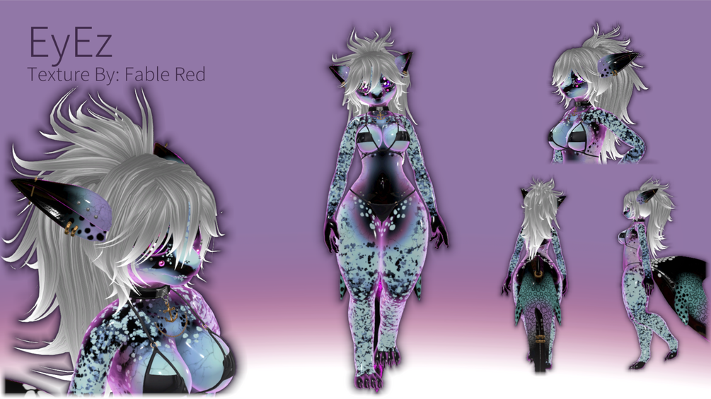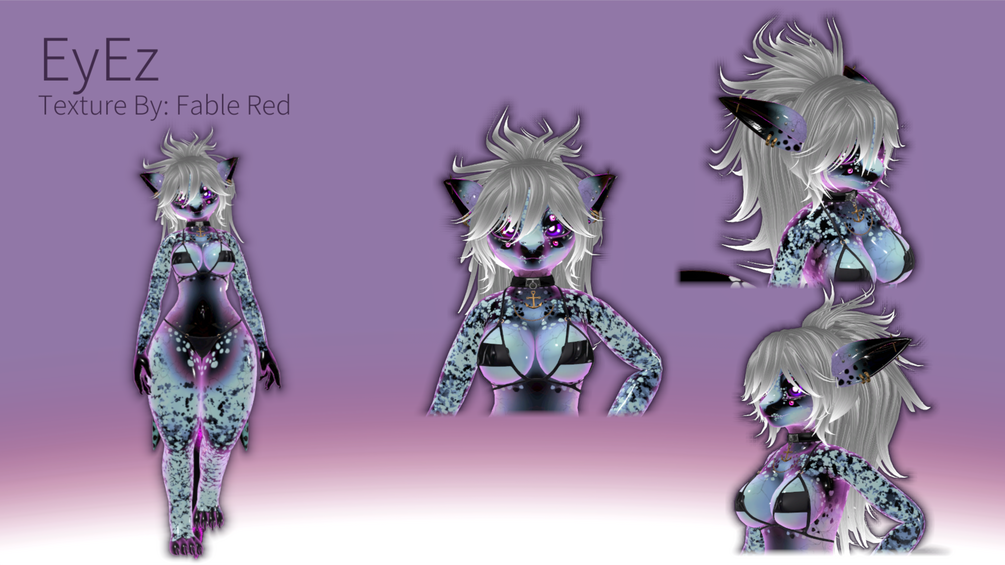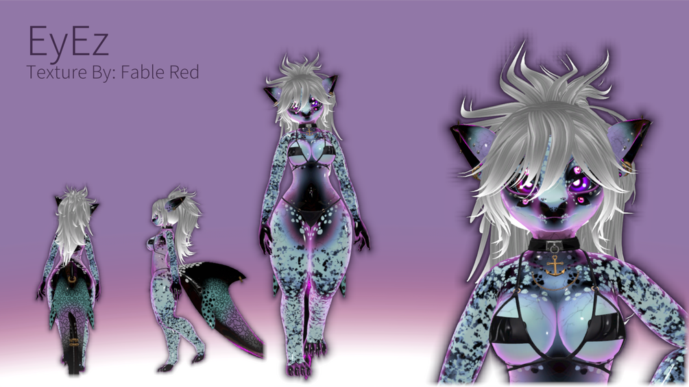 This Texture Pack includes the main body, hair and tail texture PNG. Also, includes some Pre-made Materials that'll need the Poiyomi 8.2 Shader.